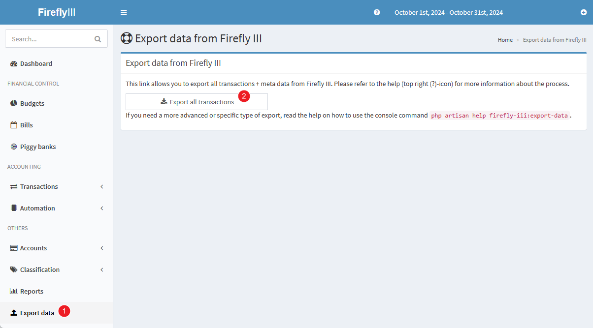 - Click the "Export Data" button and select the file type to export all transactions into the chosen file format